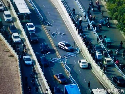 石家庄中山路地道桥附近又有小车撞护栏 不是第一次了