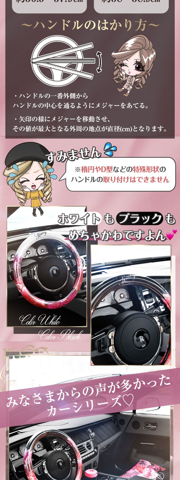 レディース ハンドルカバー ステアリングカバー カーハンドルカバー 36cm38cm Mサイズ 普通車 汎用 自動車内装 ドライビング Www Abchouston Org Index Php