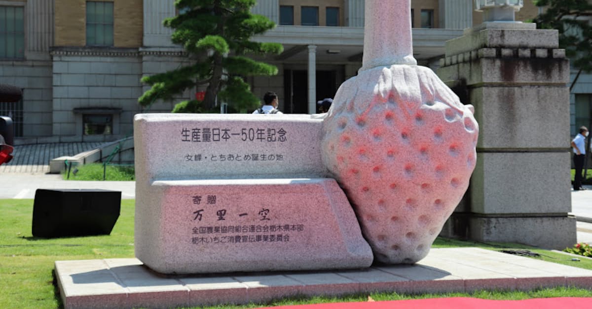 栃木県庁前にイチゴの碑 新たな写真スポットに 日本経済新聞